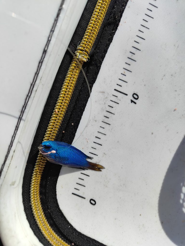 爆風すぎてすぐに足元に仕掛けが帰ってきてしまい、ルアー?を釣りました。